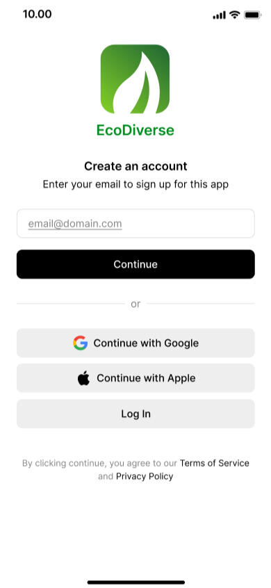 This would be where the user can create a new account. They can choose to make an account using their Email, Google Account, or Apple Account.The user can log in into their account if they already have one.